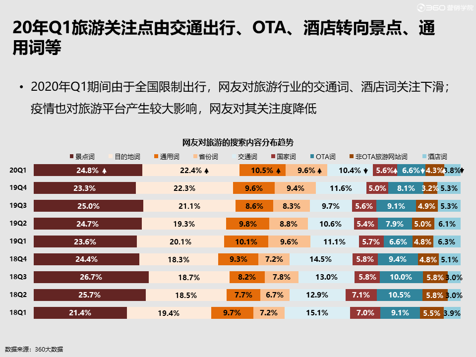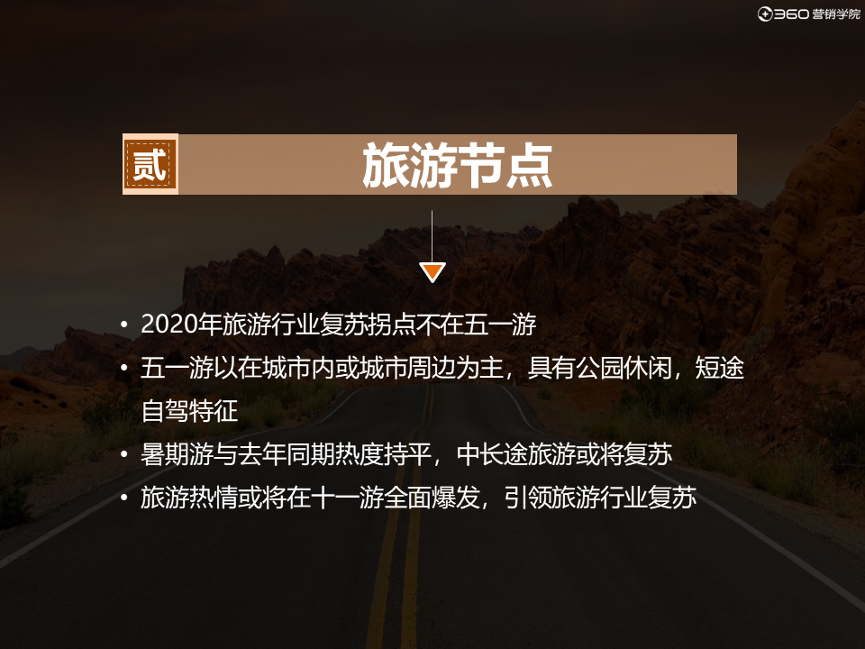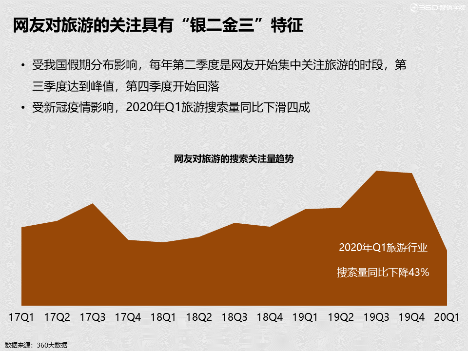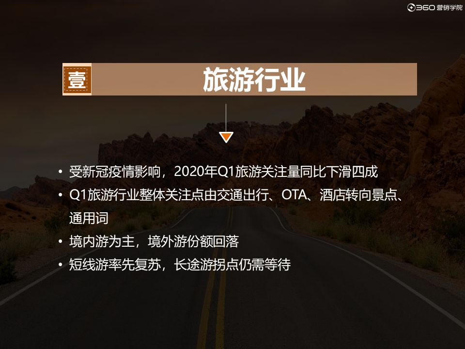 行业洞察 | 2020旅游风向标!2020年年初,一场突如其来的疫情,不仅终止了人们春节出游的计划,也让旅游行业被紧急按下了“暂停键”。没有了说走就走的旅行,旅游行业顷刻间成为受疫情影响**的“重灾区”之一。 疫情期间,网友对旅游行业的关注点都有哪些变化?下半年的暑期游能否迎来疫情后的首个出游高峰期?旅游行业将何时迎来复苏拐点?360营销学院发布《2020旅游风向标》,带你了解疫情期间,旅游行业的“风云变幻”! 摘要